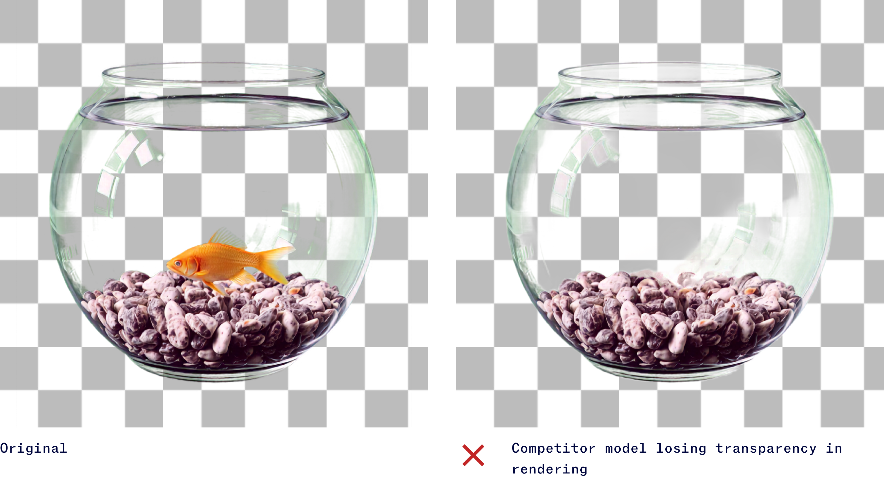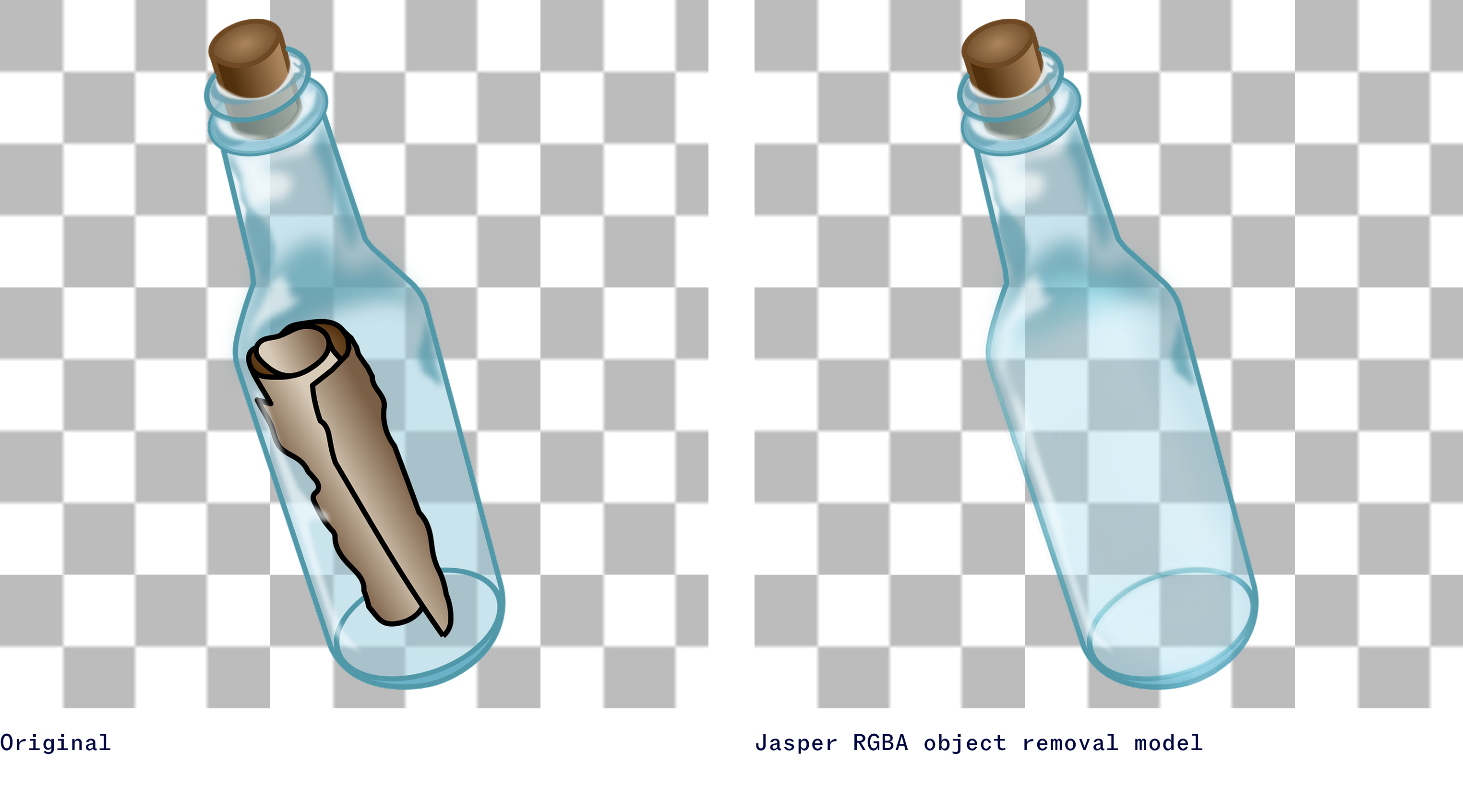 Handling transparent images has historically presented a massive hurdle for automated object removal tools. Previous iterations of our Cleanup model, like many standard models on the market today, could only process standard RGB images. Jasper effectively bridges this gap by including the alpha channel.